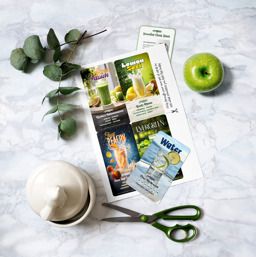 👍 No more agonizing over meal choices or flipping through bulky cookbooks. Just select a card and blend a delicious, nutritious smoothie in minutes.