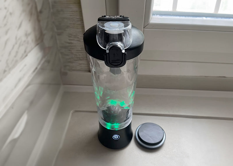 When you screw on the cup component, the blender has a cool light display which will indicate how charged it is. Green lights mean the battery is fully charged, and as the number of red lights increase, you'll see how low the battery is.