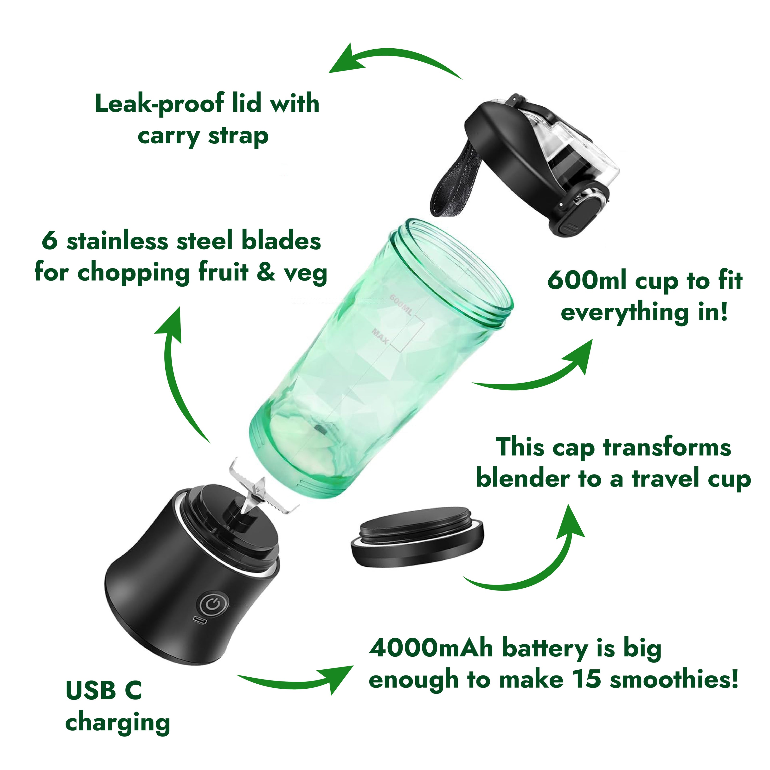 👍 With just one charge, our Portable Blender can make up to 15 smoothies!